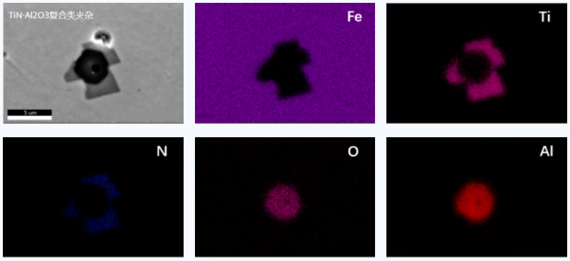 For example, by measuring the length of the inclusions in the case shown above, it can be seen that the average size of Al2O3 inclusions is about 3 μm, TiN and AlN are within 5 μm, and the size of composite inclusions does not exceed 8 μm; These fine inclusions play a pegging role for the magnetic domains within the electrotechnically pure iron, which will affect the final magnetic properties.
