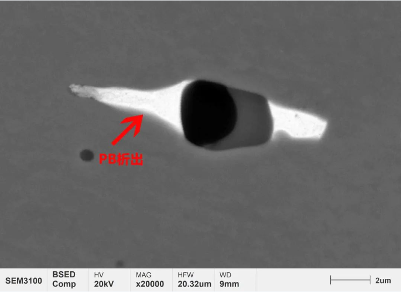 At a certain accelerating voltage, since the yield of backscattered electrons basically increases with the increase of the atomic number of the specimen, the backscattered electrons can be used as an imaging signal to display the atomic number liner image, and the distribution of chemical components on the surface of the specimen can be observed within a certain range. The atomic number of Pb is 82, and the backscattered electron yield of Pb is high in the backscattered mode, so Pb is bright white in the image.