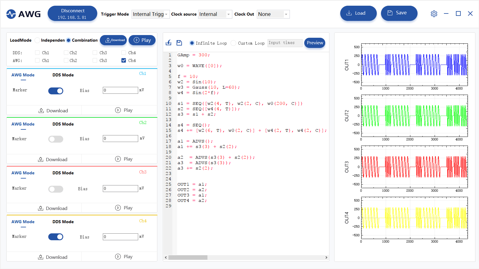 Four-channel independent output.