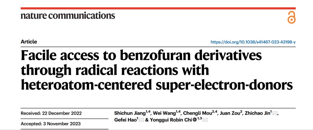 Nature Communications:Facile access to benzofuran derivatives through radical reactions with heteroatom-centered super-electron-donors