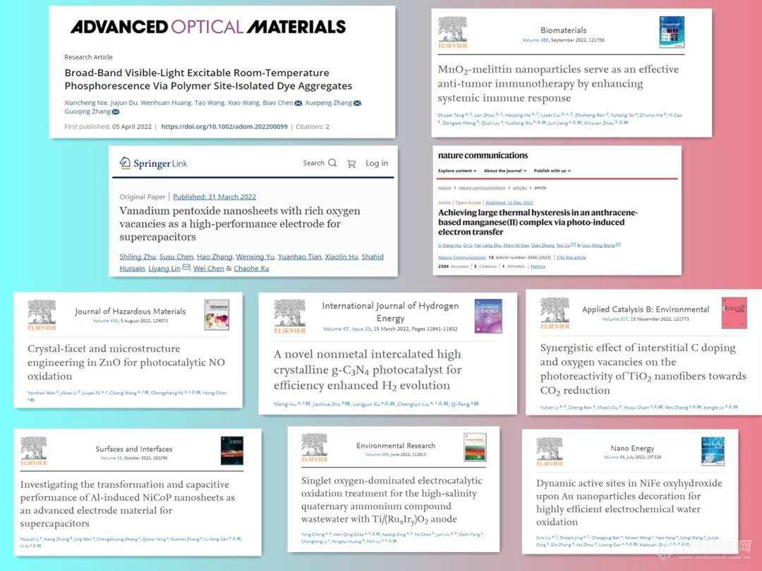 CIQTEK EPR (ESR) spectroscopy has helped several research users get scientific data and the results were finally published in high-level journals, including Applied Catalysis B: Environmental, Biomaterials, Nature Communications, Advanced Optical Materials, Nano Energy, Journal of Hazardous Materials, Environmental Research, Surfaces and Interfaces, International Journal of Hydrogen Energy, Ionics, etc.