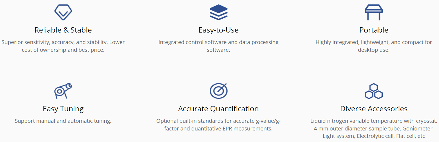 The EPR200M is a newly designed, ergonomic benchtop electron paramagnetic resonance spectrometer. Based on high sensitivity, high stability, and a variety of experimental scenarios, it provides every EPR user with a cost-effective, low-maintenance, simple and easy-to-use experience.
