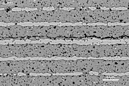 MLCC's internal is a multi-layer structure, each layer of ceramics whether there are defects, multi-layer ceramics thickness is uniform, whether the electrodes are covered uniformly, all of these will affect the life of the device. When using SEM to observe the internal multilayer structure of MLCC or to analyze their internal failures, it is often necessary to perform a series of pre-treatments on the samples before they can be tested. These include resin embedding, mechanical grinding, conductive treatment by a coater, etc. Further finishing treatment can also be done using an ion mill. The figure below shows the microscopic morphology of the internal cross-section of the MLCC taken with a CIQTEK tungsten filament SEM3200. As seen in the figure, delamination of the ceramic dielectric layer may be the cause of device failure.