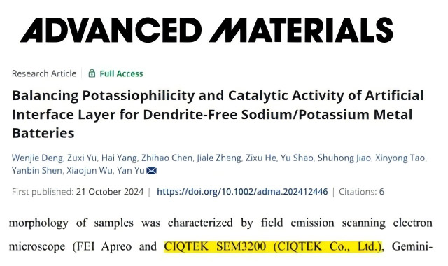 Professor Lai’s team from Fuzhou University conducted in-depth studies using the CIQTEK SEM microscope, and their research was published in Advanced Functional Materials.