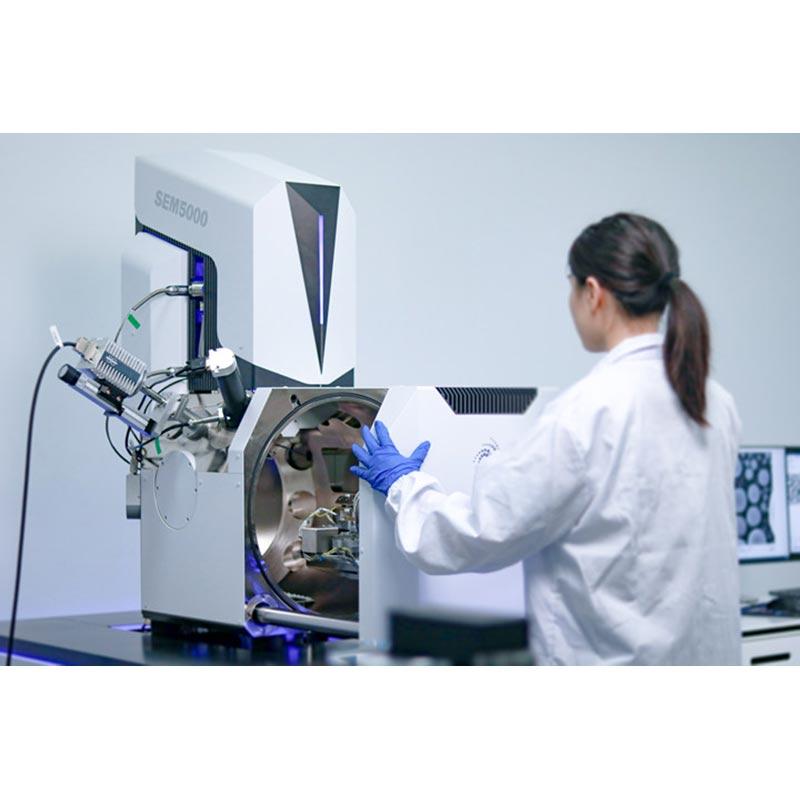 Analytical Schottky Field Emission Scanning Electron Microscope (FESEM) CIQTEK SEM4000Pro is an analytical FE-SEM model equipped with a high-brightness and long-life Schottky field emission electron gun. Its three-stage electromagnetic lens design offers significant advantages in analytical applications such as EDS / EDX, EBSD, WDS, and more. The model comes standard with a low-vacuum mode and high-performance low-vacuum secondary electron detector, as well as a retractable backscattered electron detector, which benefits the observation of poorly conductive or non-conductive specimens.