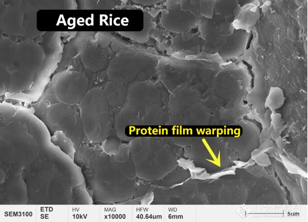 Researchers analyzed new rice and aged rice using the CIQTEK tungsten filament scanning electron microscope SEM3100. Let's see how they differ in the microscopic world!