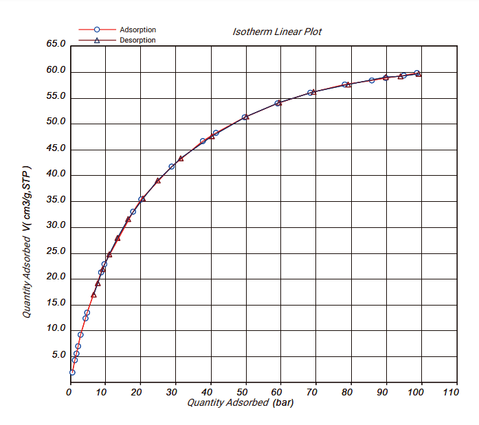 Adsorption/desorption isotherms measurement at any temperature from room temperature to 550°C (1022°F), Gibbs supercritical adsorption measurement; Gas adsorption and desorption rate measurement (i.e. adsorption desorption kinetics); PCT isotherm measurement, TPD temperature programmed desorption and hydrogen discharge temperature platform measurement, hydrogen absorption and discharge pressure platform measurement, hydrogen absorption and discharge cycle experiment (fatigue test); Coal adsorption and analytical capacity measurement, adsorption and resolution rate measurement; Gas adsorption constant a and b values; Customizable coal simulation constant pressure adsorption and desorption capacity measurement function.