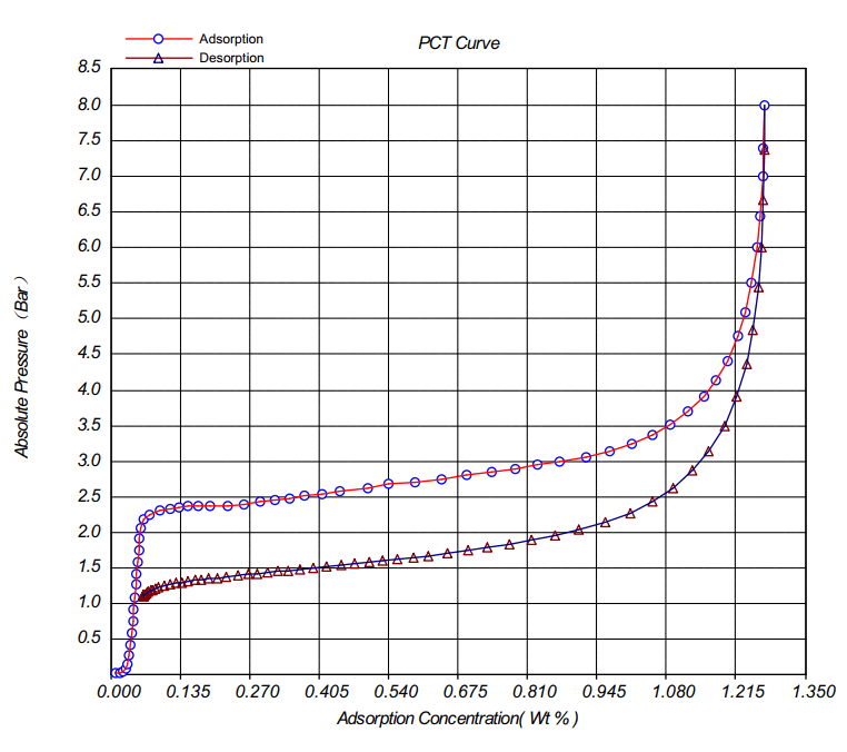 By simulating the gas pressure and temperature requirements of hydrogen storage materials in the application environment, the PCT curves, desorption kinetics curve, and desorption hydrogen platform pressure of hydrogen storage materials are measured, providing a powerful tool for the research of hydrogen energy storage and application development.
