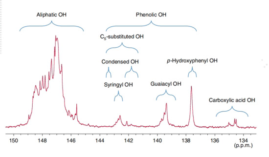 In lignin, groups with unstable protons can react with phosphorus-containing reagents to form phosphorus-containing derivatives. By using the technique of quantitative ³¹P NMR spectroscopy, the quantity and structure of functional groups such as carboxyl and hydroxyl groups can be studied.