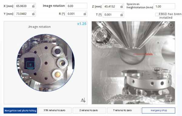 Using a vertically mounted chamber camera to capture optical images for specimen stage navigation allows for a more intuitive and accurate specimen positioning.