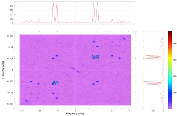 HYSCORE is essentially a two-dimensional ESEEM experiment in which correlation is transferred from one electron spin manifold to another, capable of resolving overlapped absorption peaks. HYSCORE experiments not only detect the Larmor frequencies of nuclei to identify their types but also provide hyperfine coupling information. This allows the differentiation of hyperfine interactions and enables selective nuclear detection.